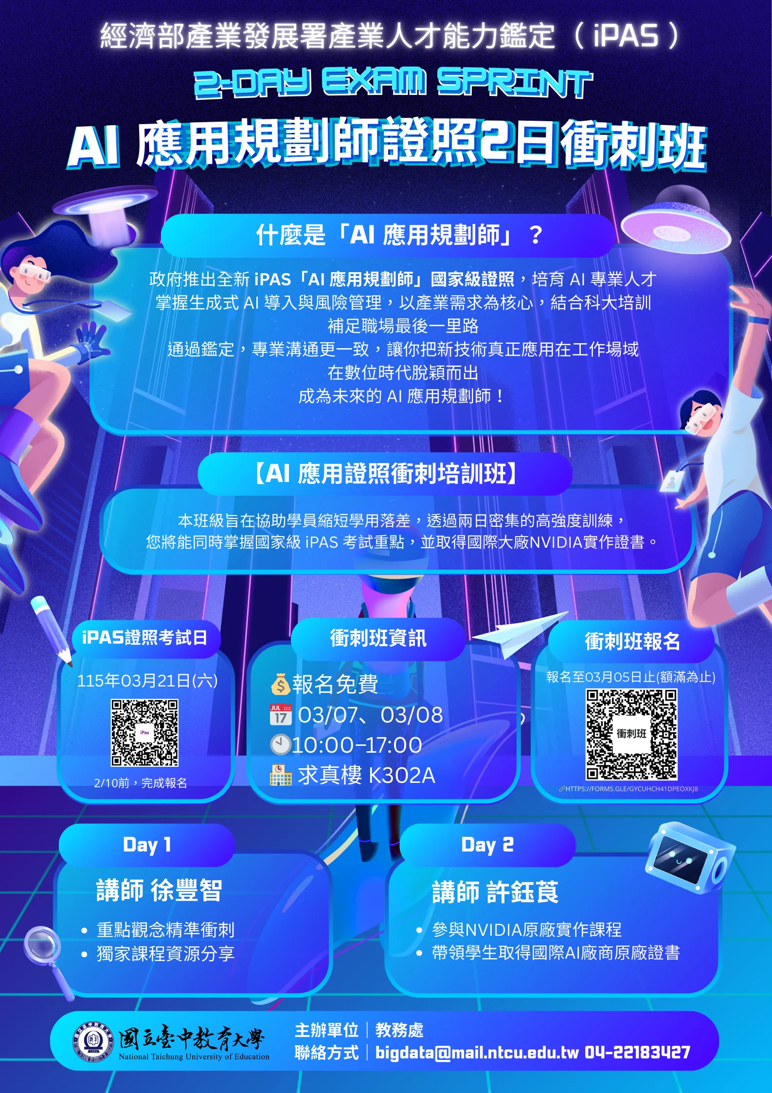 3/7-3/8辦理AI應用規劃師衝刺培訓班 -開放報名中
